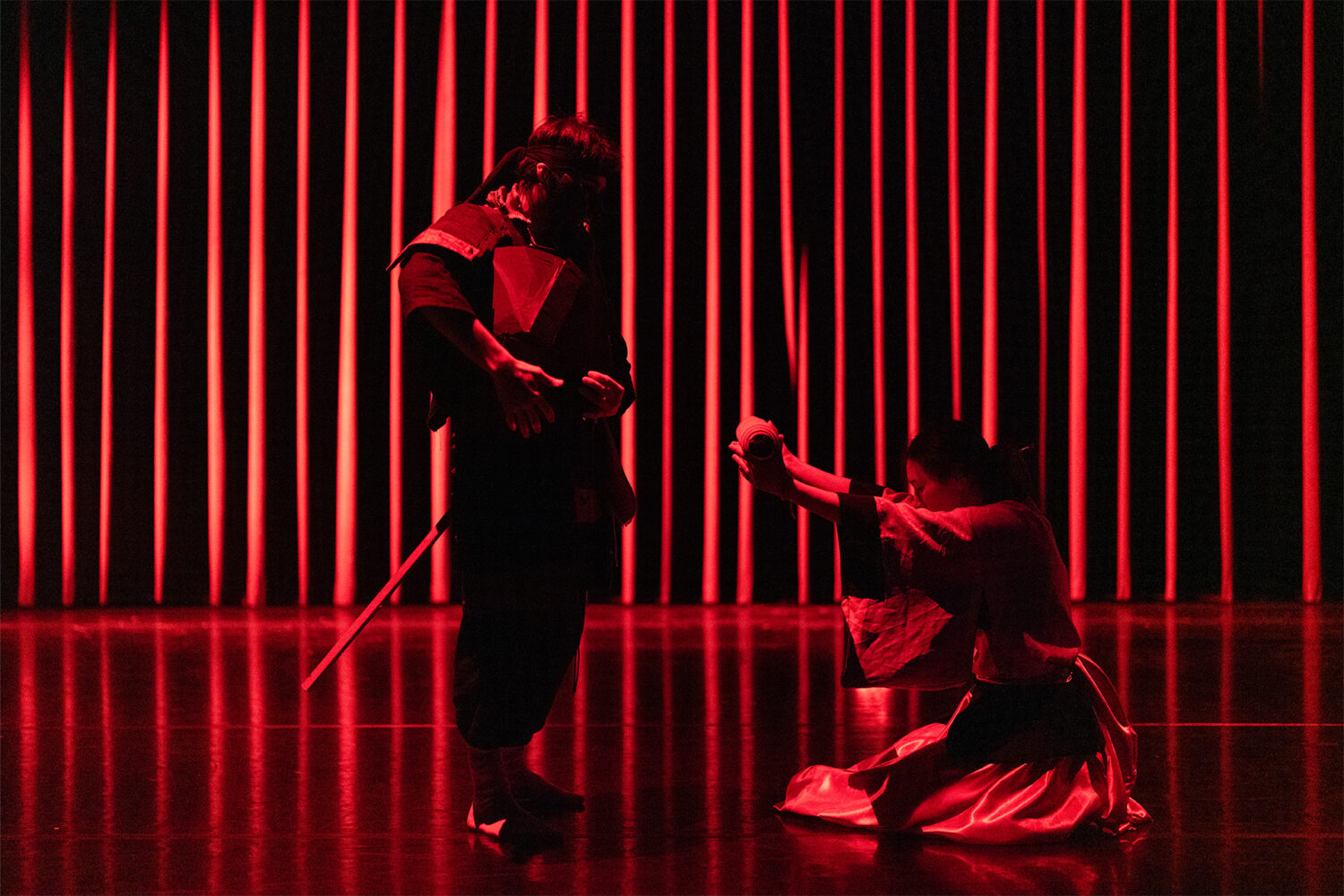 In Edo Japan, an evil ruler makes way to occupy a small village, where Akane lives under the ruling of her father: the King, who refuses to surrender to the evil ruler and out of honour, wants to lead his people to war. Akane instead, as the daughter of the king, writes a statement of surrender to avoid the inevitable mass murder of all the people in her village. She secretly signs the official statement under her name and decides to deliver it in person to the evil ruler. What happens in that meeting, between the evil ruler and princess Akane, is what this piece captures.