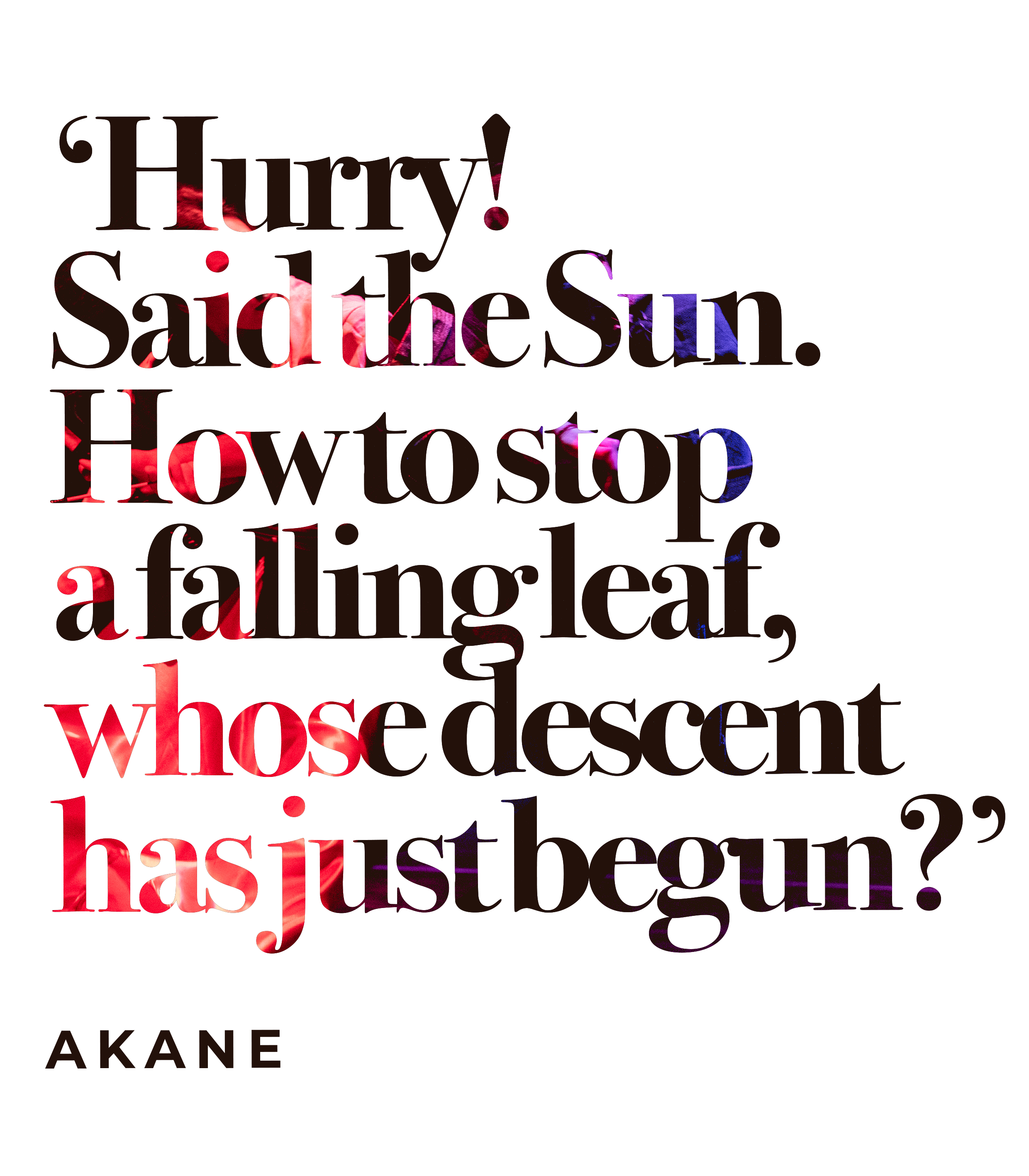 ‘Hurry! Said the sun. How to stop a falling leaf whose descend has just begun?’
